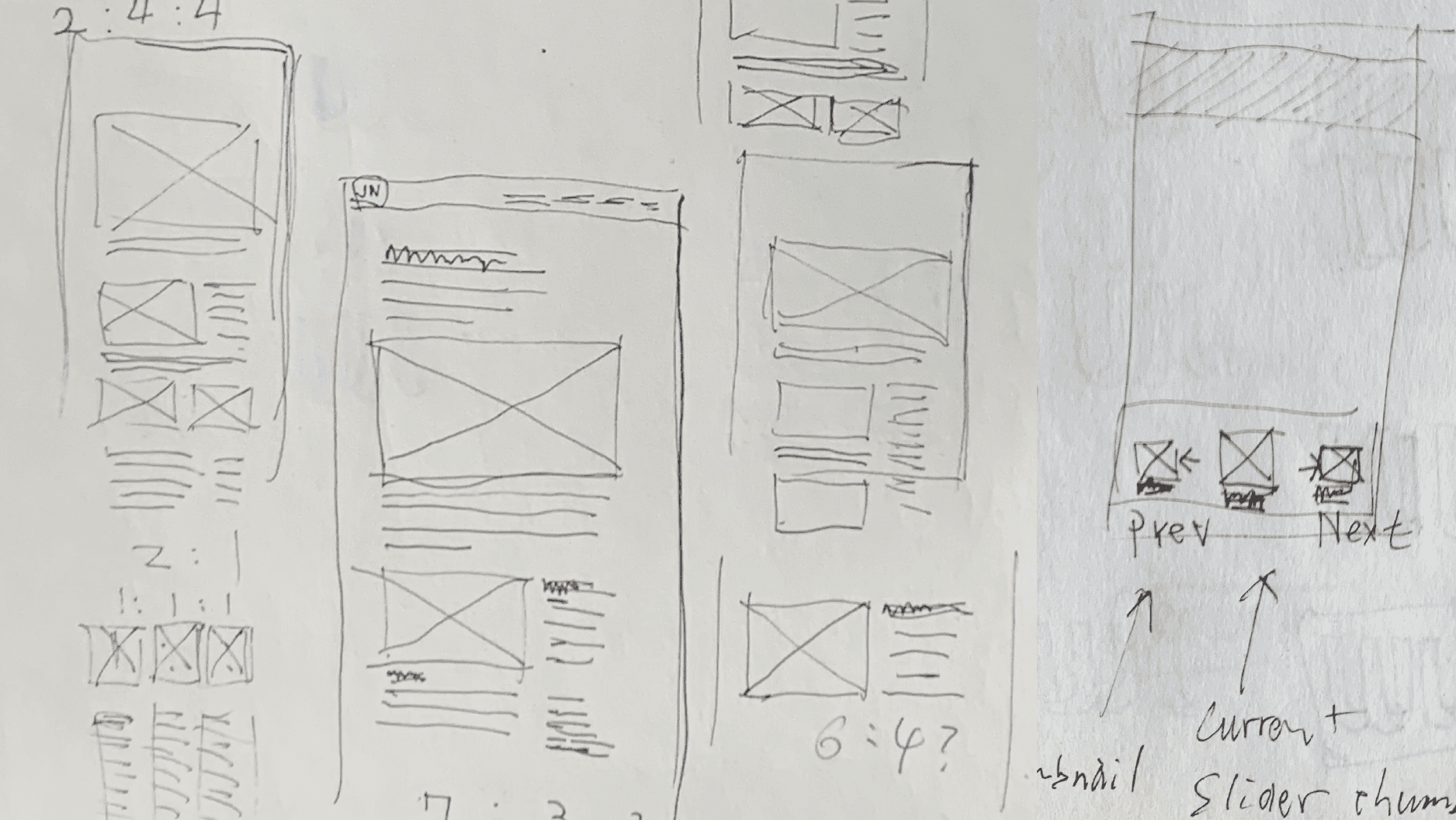 Ideation & Wireframing - sketching out the sitemap and hand-drawing wireframes for pages before bringing the ideas into digital tools.