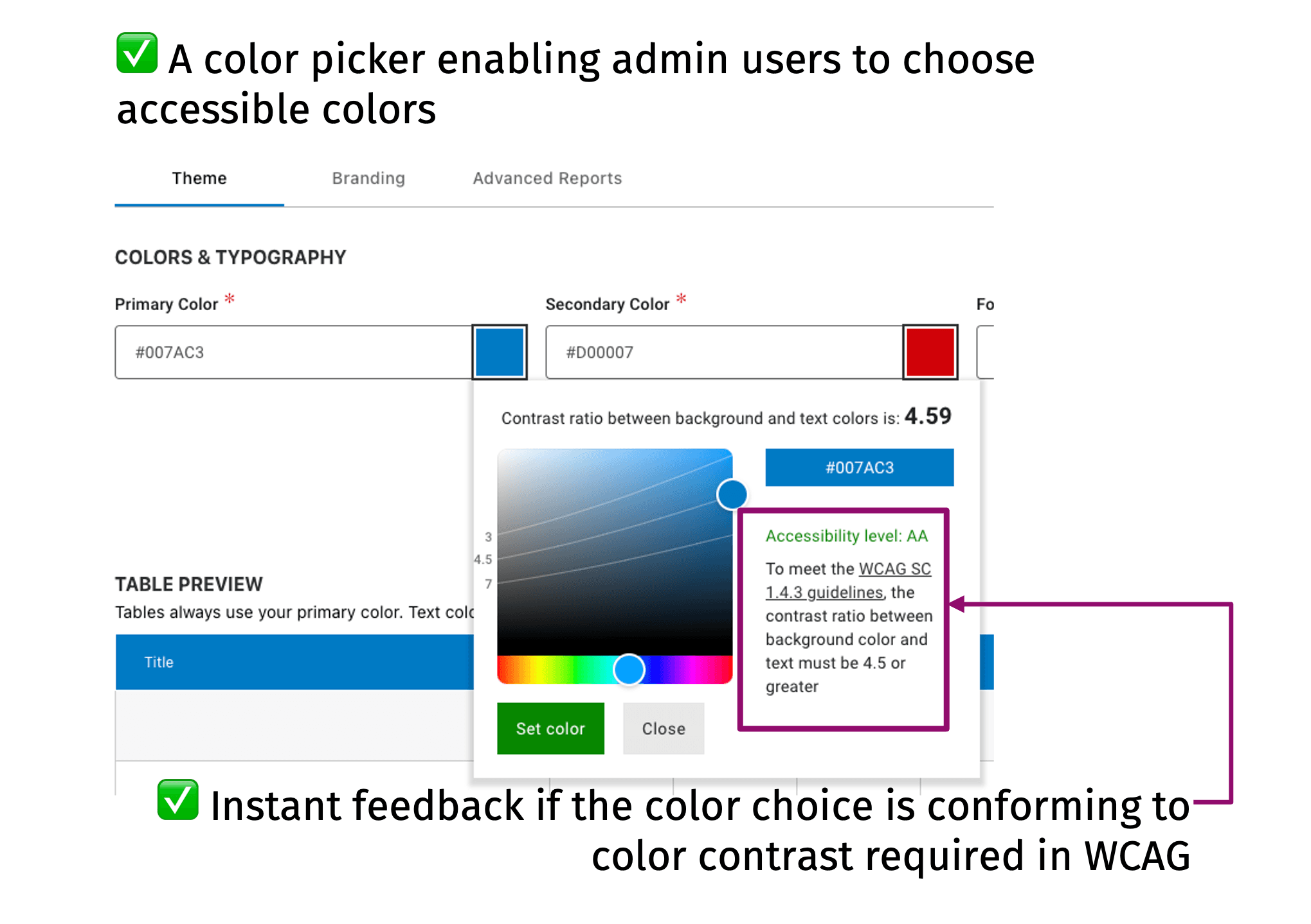 Color picker redesign with contrast ratio detectionion