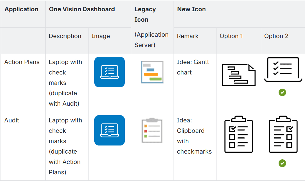 The solution included creating unique, identifiable icons for each application while leveraging existing WK PDS icons where appropriate.