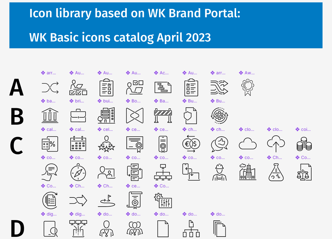 By incorporating the distinctive open-segment style, the new icons reinforce Wolters Kluwer's brand identity while remaining functional and accessible.