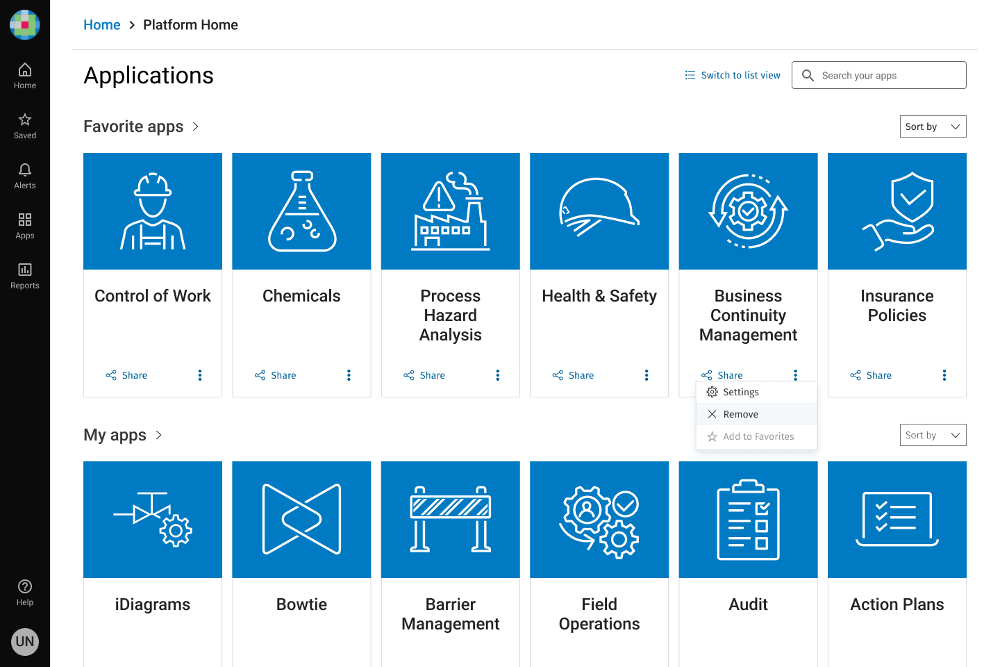 Enablon developed its new Platform Home as a unified starting platform for accessing multiple applications, including CoW, PHA, EHS, and Open Insights. However, the original implementation had usability issues that needed to be addressed.